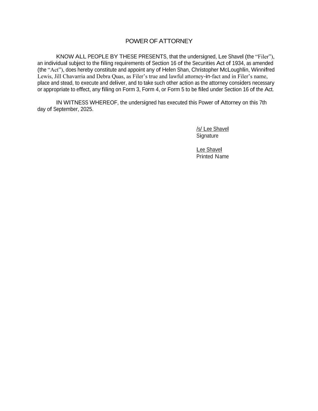 | s/ WINNIEFRED LEWIS, Attorney in Fact for Lee Shavel | 01/20/2026 | |